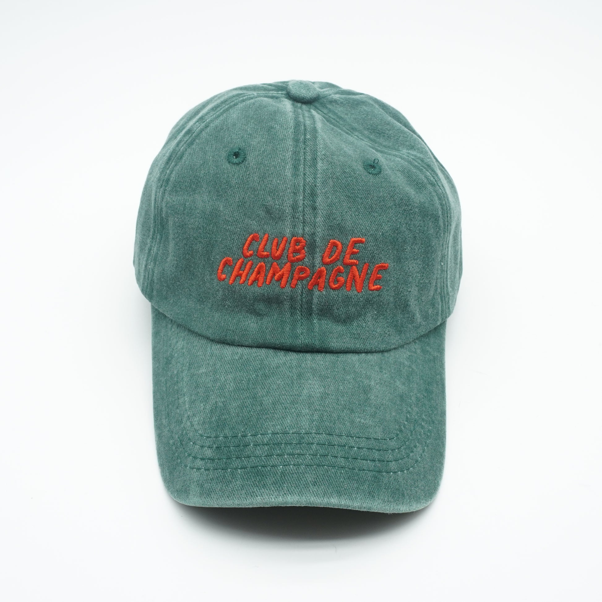 Dürfen wir vorstellen? Unsere Vintage-Cap mit klassischem "Club de Champagne" Schriftzug in Hunter Green. Hergestellt aus luftig leichter Baumwolle - somit perfekt für einen lässigen Tag am Strand oder zu pulsierenden Beats im Beach-Club oder einfach auf dem Hochsitz. Passend für eigentlich jede Gelegenheit. Natürlich ist die Cap individuell verstellbar. Prost!